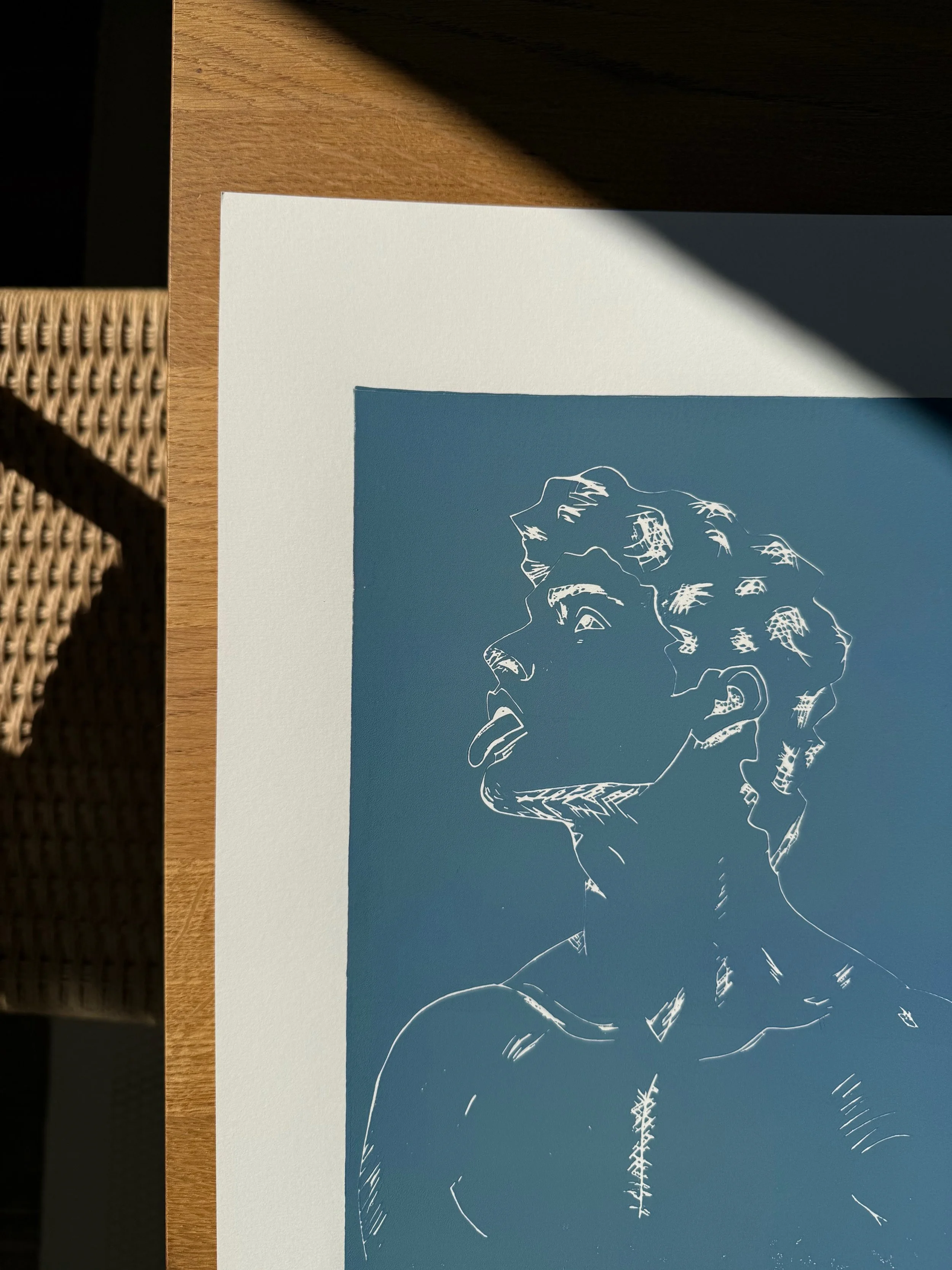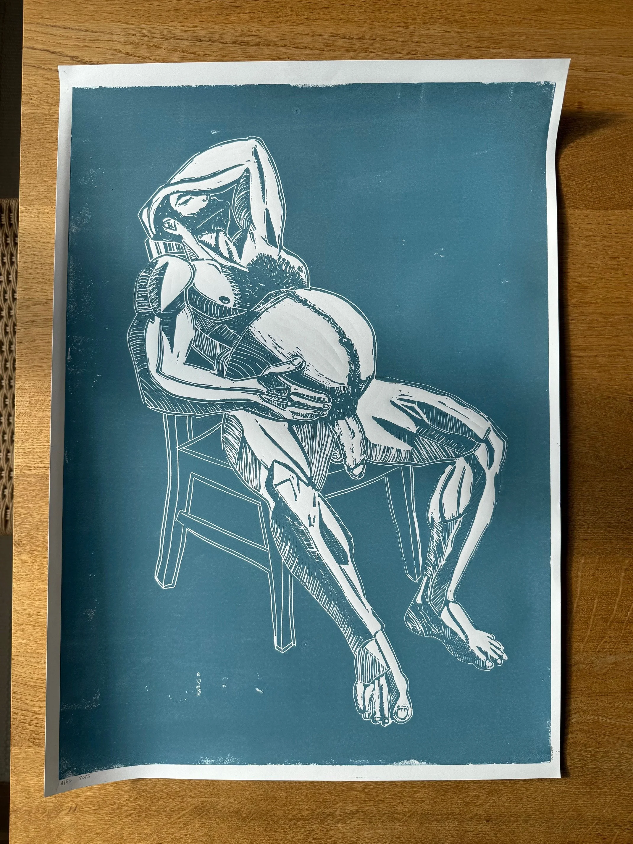 After-Feast Daddy Linolschnitt, 42 x 59.4 cm, limitiert auf 50 Exemplare in Farbvarianten, nummeriert und signiert