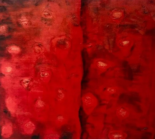 Marianna Magyarovits “Mohn 1”, 2023, 19 x 14 cm, Transfer und Mischtechnik Acryl auf Leinwand